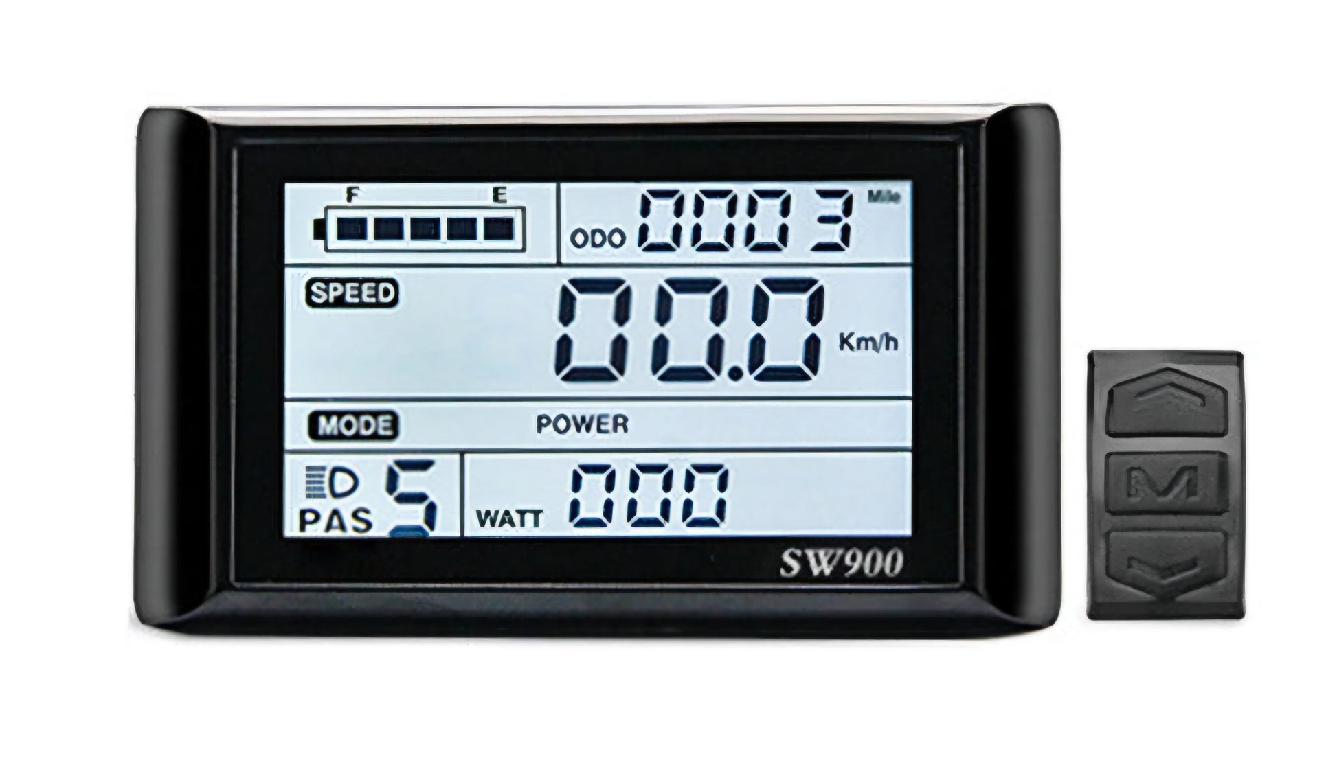The SW900 Display Unit provides a detailed view of your electric bike experience. With its LCD display, you can easily monitor your speed, mileage, trip distance, and power usage. Stay informed and in control with this essential component for any electric bike rider.