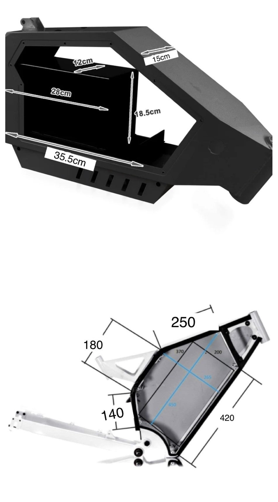 Battery casing: 14"x4.7"x 7.3"/ 35.5 x 12 x 18.5cm